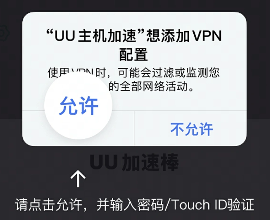 2.待手机上提示系统弹窗后,点击“允许”按钮: